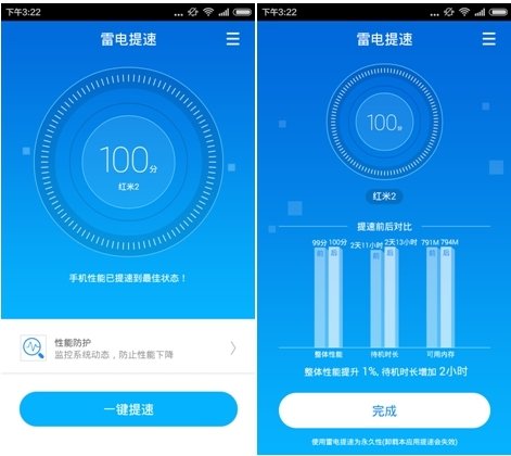 经过实测,雷电OS的提速效果很明显。在新手机中使用“雷电提速”后仍然能够提速29%,而用旧手机提速后,系统运行提速达40%以上。
