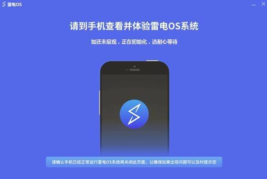 接下来就是雷电OS的自动刷机过程,刷机的过程中,切勿拔出手机。刷机的时间大概两三分钟就可以了,很快。